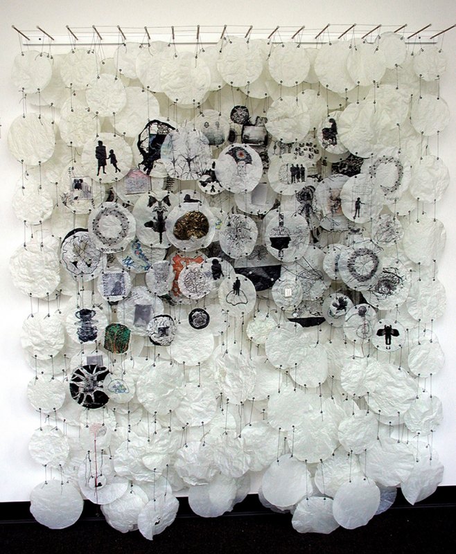 5.-Cerebration,86'x72"x6", Denril, bee's wax, graphite, m.m. 6.-Labyrinth-Of-The-Mind, 86"x72"x6",Denril, bee"s wax, graphite, ink, m.m. »